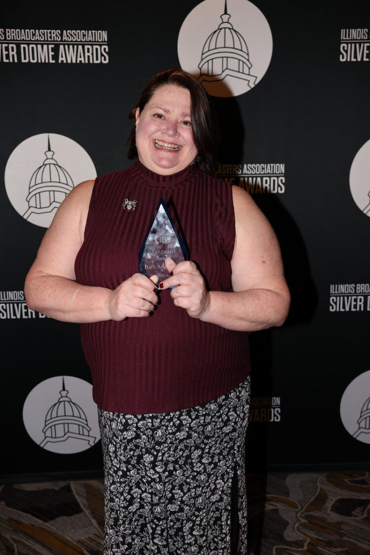 The Illinois Broadcasters Association’s Vanguard Award acknowledges the hard work, commitment and tenacity of team members who have served an Illinois broadcast organization for a minimum of 20 years. Qualifying individuals include team members who work behind the scenes (ie.–newsrooms, administration, logistics, etc…) to ensure their respective operations perform at the highest level. Up to five individuals from across the state are recognized annually.